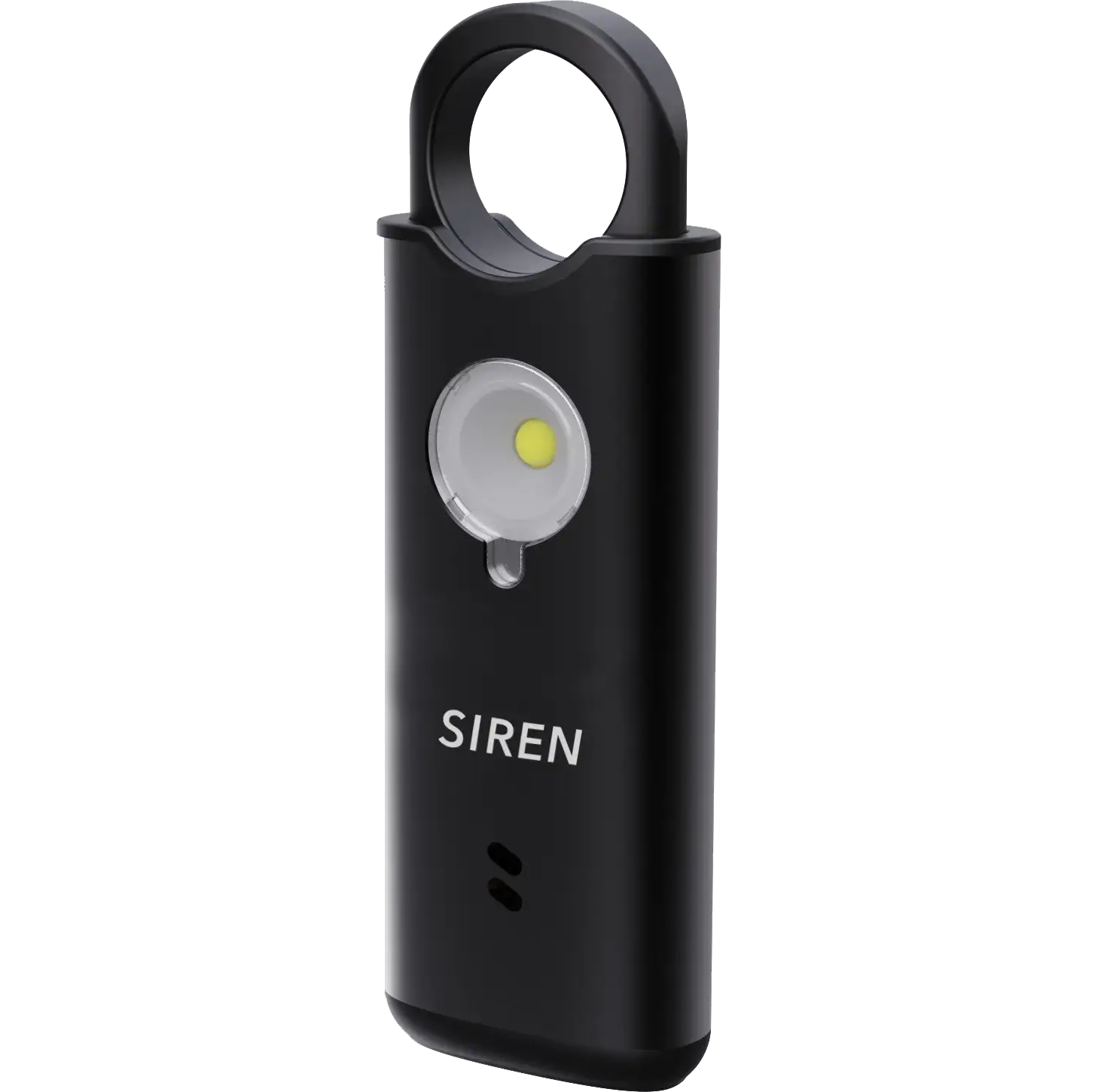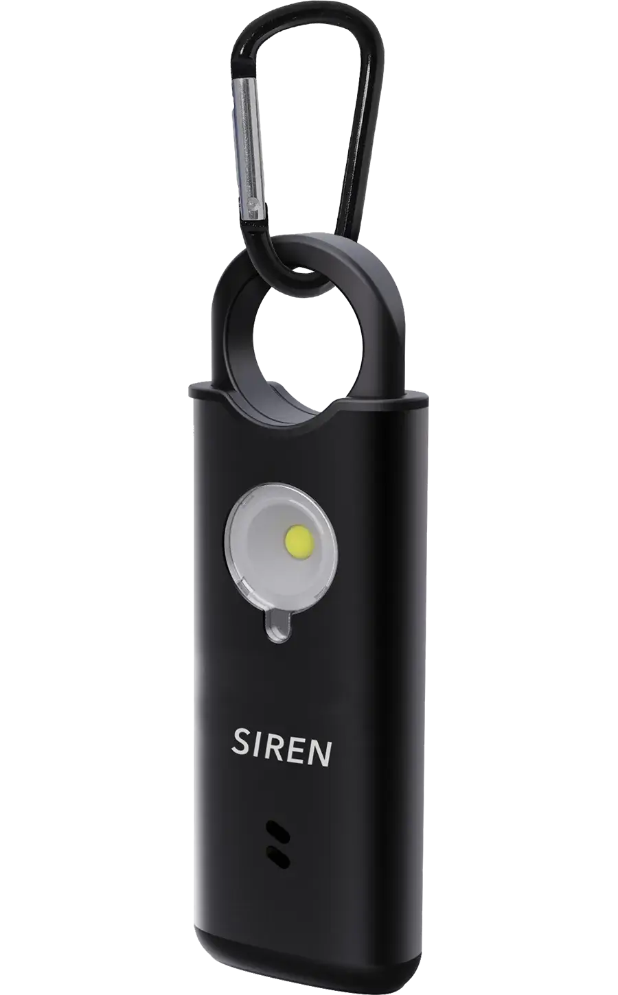 Personal safety alarm that delivers powerful, portable protection through a 135 dB siren, flashing LED light, and vibration-activated mode.